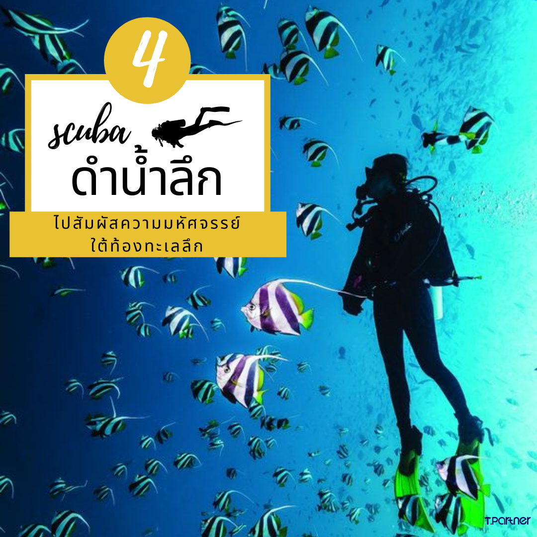 ใช่ว่าใครก็ดำได้นะคะ คุณจะต้องเรียนจากผู้เชี่ยวชาญพร้อมทั้งเตรียมร่างกายให้แข็งแรงก่อนการดำน้ำ แต่มันคุ้มค่ามากค่ะ เพราะเมื่อคุณได้ลงไปใต้ท้องทะเลแล้ว จะได้สัมผัสความมหัศจรรย์เหมือนอยู่โลกอีกใบ ได้เห็นความสวยงามของ