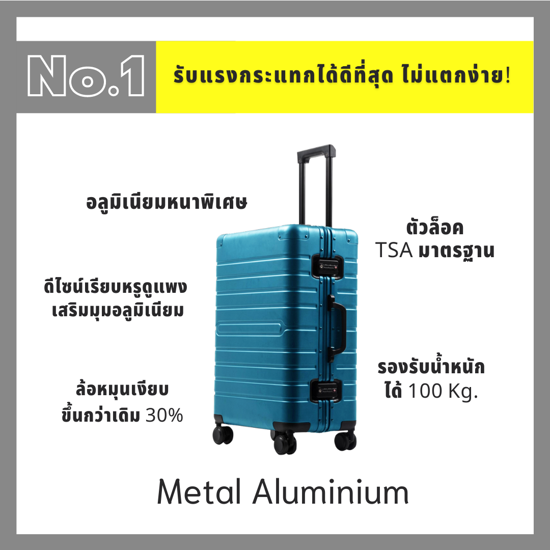 สำหรับคนที่ต้องการกระเป๋าเดินทางดีไซน์โมเดิร์น วัสดุแข็งแรง ราคาหลักพัน คุณภาพหลักหมื่น แนะนำเลยค่ะ ดีไซน์เรียบหรู วัสดุอลูแท้ทั้งใบ เสริมอลูมิเนียมที่มุมให้ โดนกระแทกได้ ไม่แตกง่าย