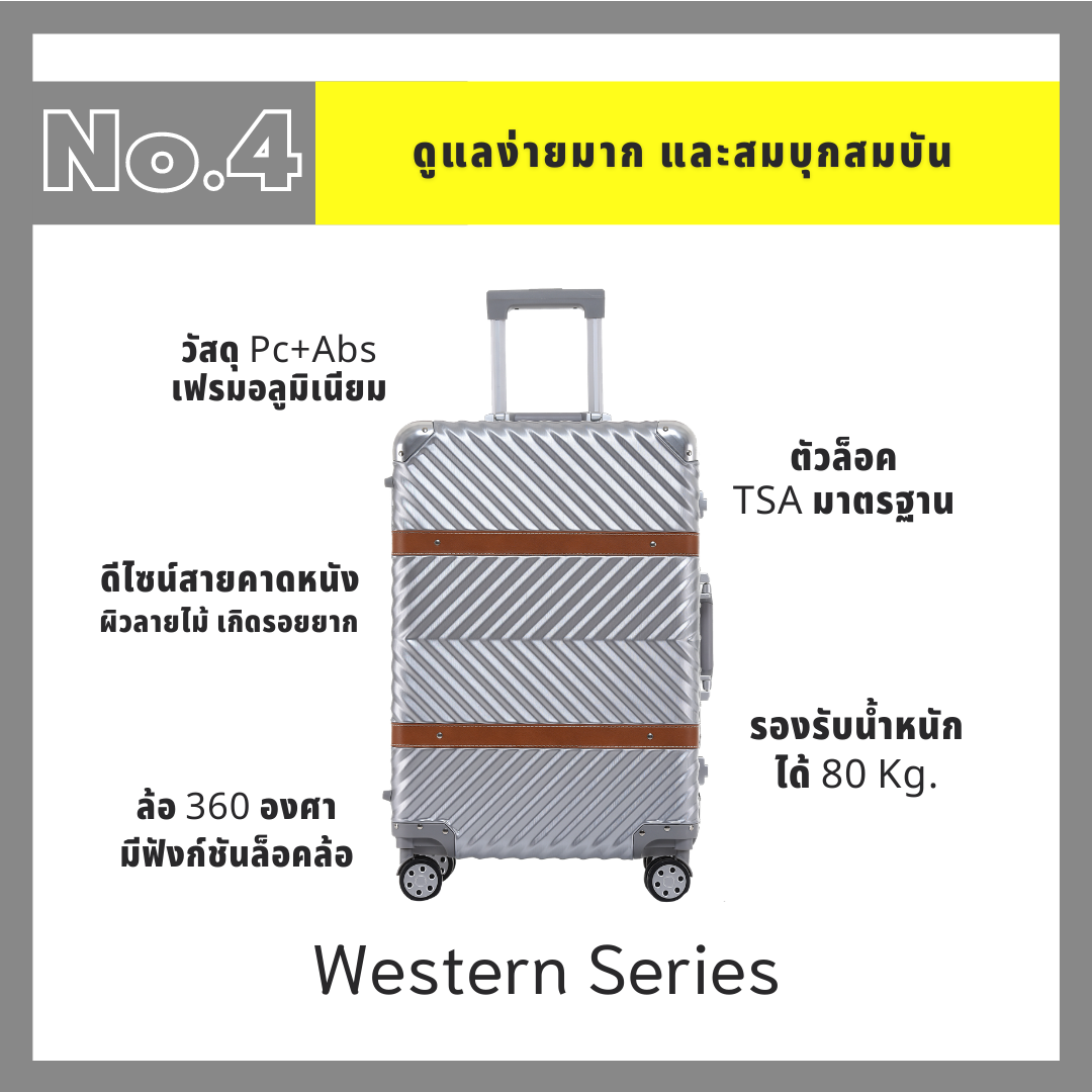 อันดับที่ 4 Western : กระเป๋าเดินทางเฟรมอลูมิเนียม ความแข็งแรงของรุ่นนี้เป็นที่บอกกล่าวกันในกลุ่มลูกค้า tpartner ไม่ว่าจะขึ้นรถ ลงเรือ โหลดใต้เครื่องได้หมด
