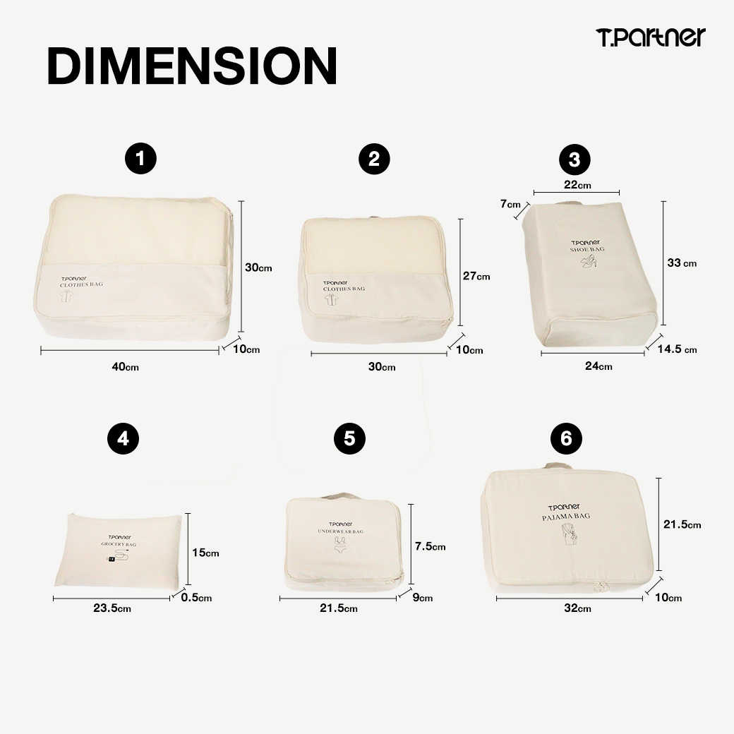 กระเป๋าจัดระเบียบ เซ็ต 6 ชิ้น ผู้ช่วยจัดกระเป๋าเดินทาง คุณภาพพรีเมียม ดีไซน์เรียบง่าย ครบครันทุกการใช้งาน