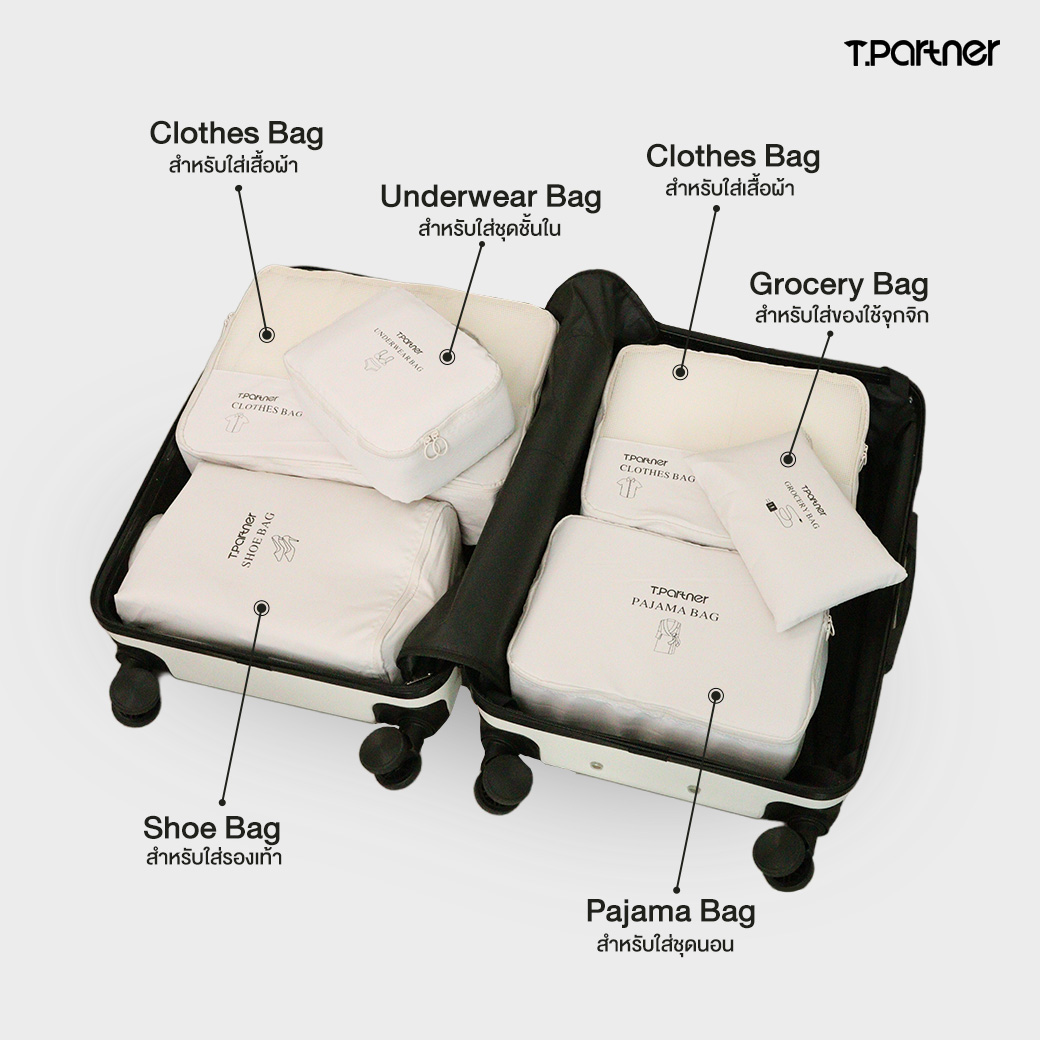 ► เซ็ต 6 ชิ้น — แยกสัมภาระได้ชัดเจน จัดง่าย หาไว ไม่ต้องรื้อ