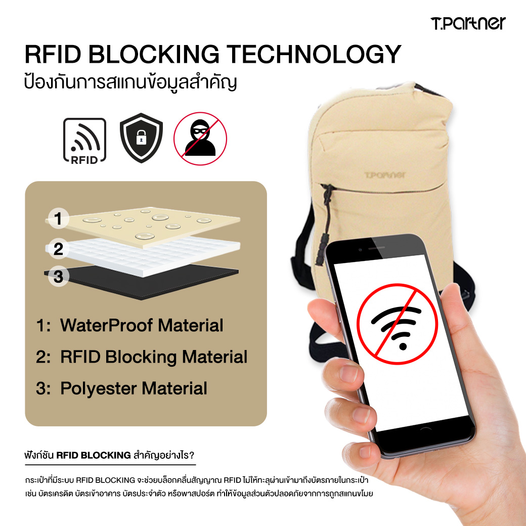 ►ช่อง RFID Block  (Radio Frequency Identification) กระเป๋าที่ออกแบบมาเพื่อ ป้องกันการสแกนข้อมูลสำคัญ เช่น บัตรเครดิต โดยไม่ได้รับอนุญาต เพื่อความปลอดภัยในการเดินทาง