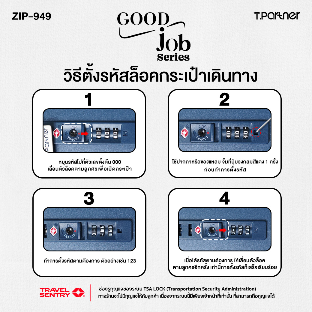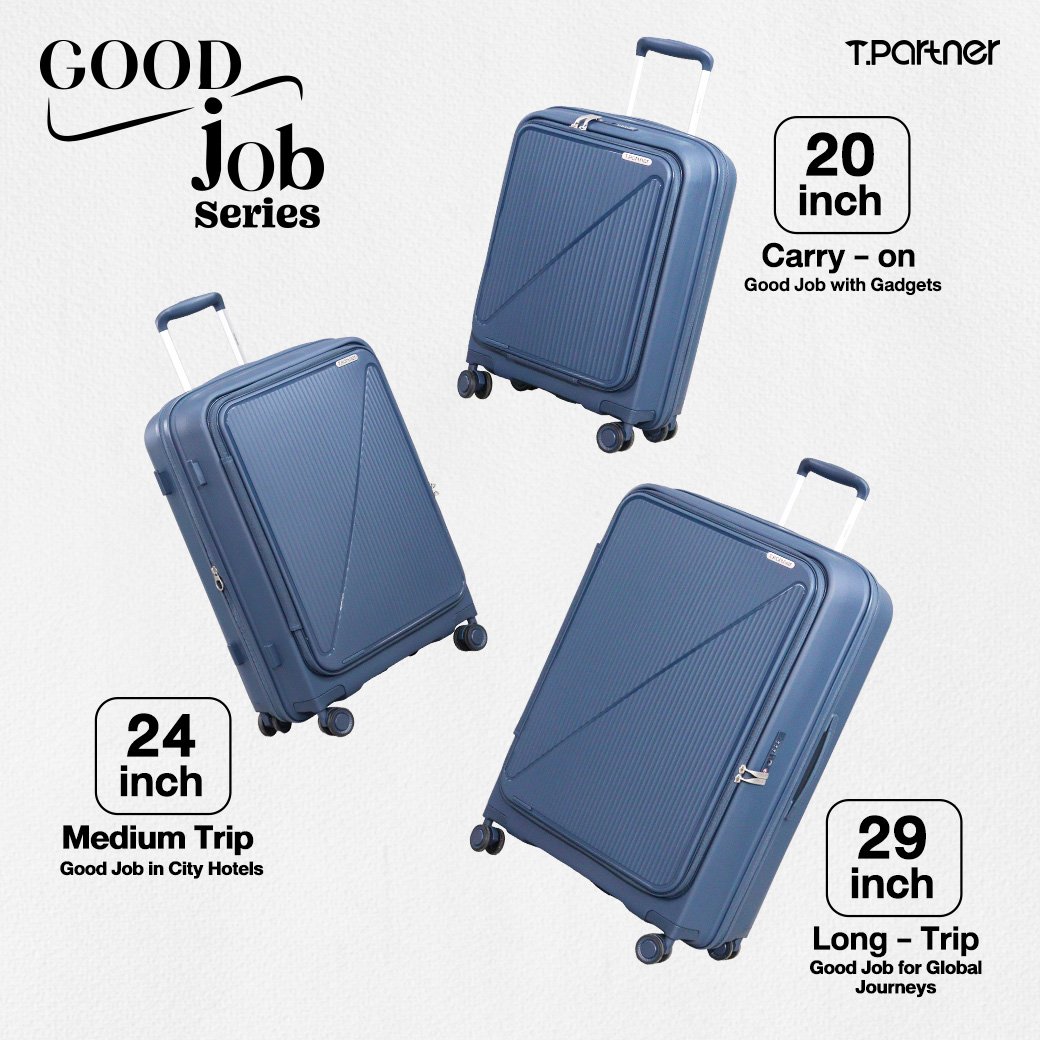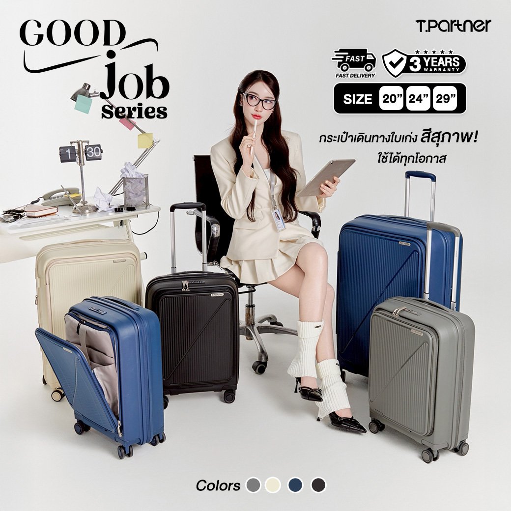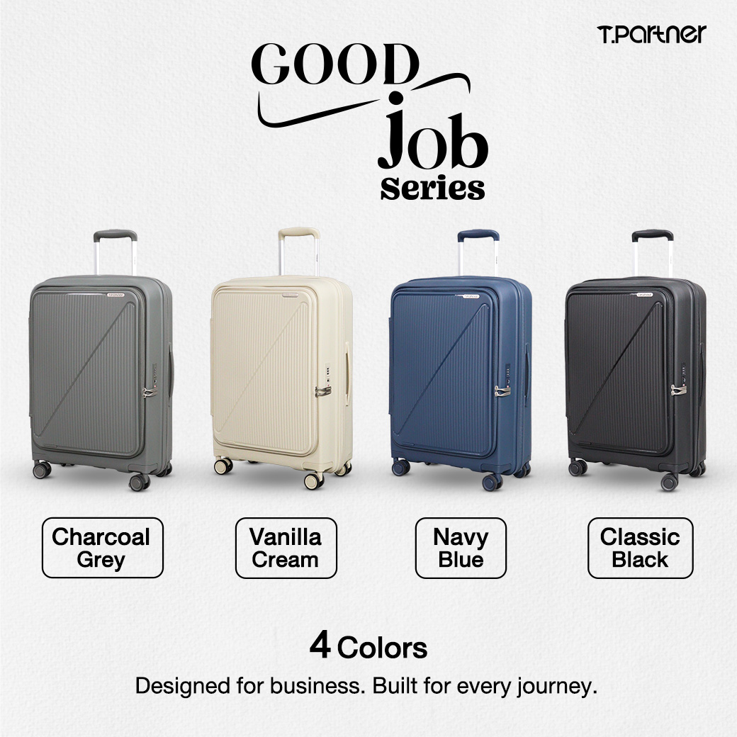 Good Job คือ “กระเป๋าใบเก่ง” ที่ออกแบบมาเพื่อการเดินทางทุกรูปแบบ ตอบโจทย์ทั้ง ทริปเที่ยว ทริปทำงาน สัมนาต่างประเทศ สัมภาษณ์งาน และการใช้งานในชีวิตประจำวันดีไซน์เรียบหรู ดูพรีเมียม โทนสีสุภาพ ใช้ได้ทุกโอกาส โดดเด่นด้วย ดีไซน์ฝาเปิดหน้า (Front Open) ไซส์ 20 นิ้ว หยิบของสะดวกแม้ในพื้นที่จำกัด พร้อม ช่องใส่ Laptop รองรับสูงสุด 17 นิ้ว ใช้งานได้ครบในใบเดียว ทั้งเดินทางและทำงาน ภายในออกแบบอย่างเป็นสัดส่วน ไซส์ 24” และ 29” เพิ่มช่องแบ่งสัมภาระด้านในช่วยแยกเสื้อผ้า ของใช้ และอุปกรณ์ต่าง ๆ ได้เป็นระเบียบ หยิบง่าย ไม่ปนกัน วัสดุ PP 100% แข็งแรง ยืดหยุ่น ทนแรงกระแทก น้ำหนักเบา ล้อลื่นคล่องตัวทุกการเดินทาง